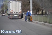 В Керчи, 11 апреля на улице Войкова, фура снесла дорожные знаки. Как Керчь.ФМ рассказали очевидцы, фура проезжала близко к обочине, зацепила на столбе знаки «Конец полосы», «Ограничение максимальной скорости» и снесла их. Водитель остановился, вышел из фуры и поднял их.