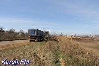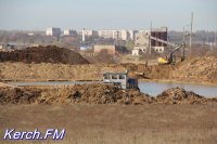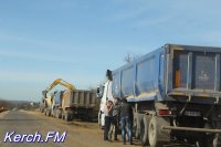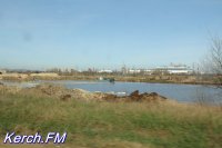 В Керчи около поворота на Приозерное продолжают активно работать земснаряды, которые добывают грунт и песок из воды. Как передает корреспондент Керчь.ФМ, на обочине стоят несколько самосвалов, которые увозят этот песок.