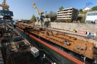 Севастопольские судостроители приступили к завершающему этапу создания плавсистемы, которая доставит арки Крымского моста с керченской технологической площадки к месту монтажа - на фарватерные опоры в Керченском проливе.