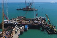Доставка арочных пролетов к фарватеру запланирована на конец августа-начала сентября. Сооружение таких арок - во многом уникальный опыт для российского мостостроения: арочные пролеты длиной по 227 метров, весом почти 6 тысяч тонн железнодорожный и более 4 тысяч тонн автодорожный еще не устанавливали в морских условиях.