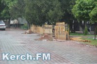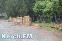 В Керчи, 15 мая, в Сквере Мира устанавливают деревянные ограждения на месте, где снесли кирпичную стенку. Сначала рабочие ставят металлические конструкции, а на них устанавливают опалубку, - передает Керчь.ФМ.