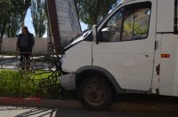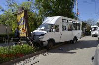 Как рассказали очевидцы, водитель маршрутки, чтобы уйти от столкновения вынужден был снести металлическое ограждение.