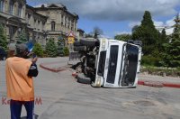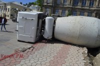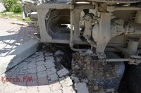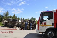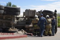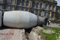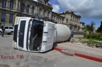 Утром на Театральной в Керчи перевернулась груженая бетономешалка (видео)