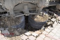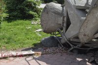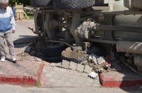 Утром на Театральной в Керчи перевернулась груженая бетономешалка. Тротуар не выдержал веса груженного автомобиля, автомобиль провалился колесами в яму и перевернулся, - передает Керчь.ФМ.