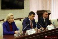 Глава муниципального образования Керчи Лариса Щербула совместно с заместителем Председателя Совета министров Республики Игорем Михайличенко и главой администрации города Сергеем Бороздиным находятся с рабочим визитом в Тульской области.