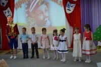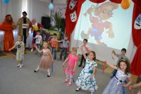 - Занятия по английскому языку, которые проводится в музыкально-игровой форме, с максимальным погружением в английскую языковую среду. Дети поют, запоминают много английских стихотворений, занимаются физкультурой, аудированием, просматривают короткие мультфильмы на англ. языке. Образовательный процесс построен в игровой форме, при помощи постановок, ролевых игр, подвижных, ярких сюжетов, дети ищут клады, виртуально путешествуют, что-то исследуют… В помощь идут видео- и аудиокурсы.
