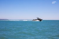 Во второй день учебная спецоперация проходила в районе фарватера Керчь-Еникальского канала. По сценарию, террористы захватили в порту Камыш-Бурун буксир, чтобы подойти на нем к фарватерным опорам и заложить взрывное устройство. На подходе к мосту они были задержаны и обезврежены, а морской буксир освобожден от условных захватчиков. На его перехват были направлены противодиверсионный катер Черноморского флота «Раптор» и пограничный сторожевой катер береговой охраны Пограничного управления ФСБ России по Республике Крым.