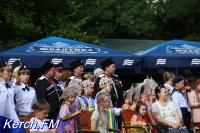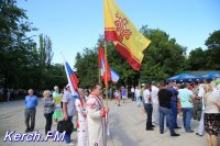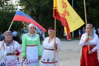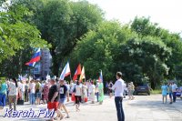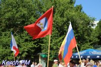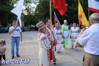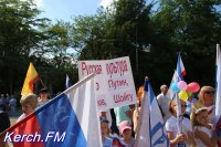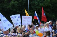 Также керчане вместе с детьми пришли в национальных костюмах, с флагами и плакатами.
