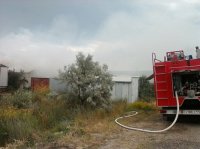 По прибытии к месту происшествия, стало известно, что загорелись два железных гаража. Площадь пожара - 12 м кв и 18 м кв