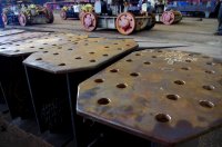 По информации производственной службы завода, порезан и обработан весь необходимый объем металлопроката, изготовлены и переданы на сверловку более двух тысяч накладных планок, большая часть необходимых балок уже изготовлена.