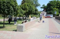 В Керчи на площади Ленина продолжаются работы по строительству новой подпорной стены. Как передает корреспондент Керчь.ФМ, стенку начали облицовывать плиткой.