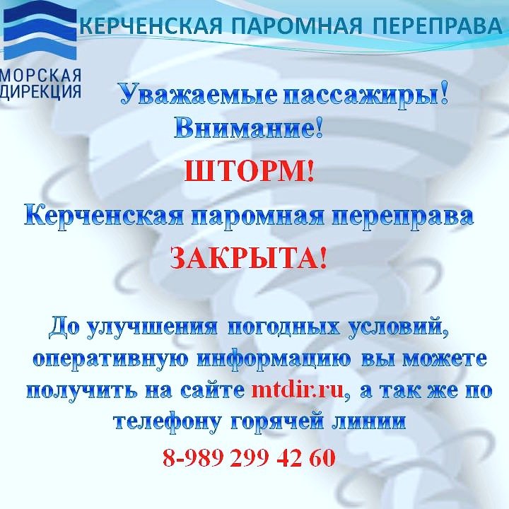 Керченская паромная переправа, 4 июля днем, приостановила свою работу в связи с погодными условиями. Как сообщает ООО «Морская дирекция», в проливе - шторм, - передает Керчь.ФМ.