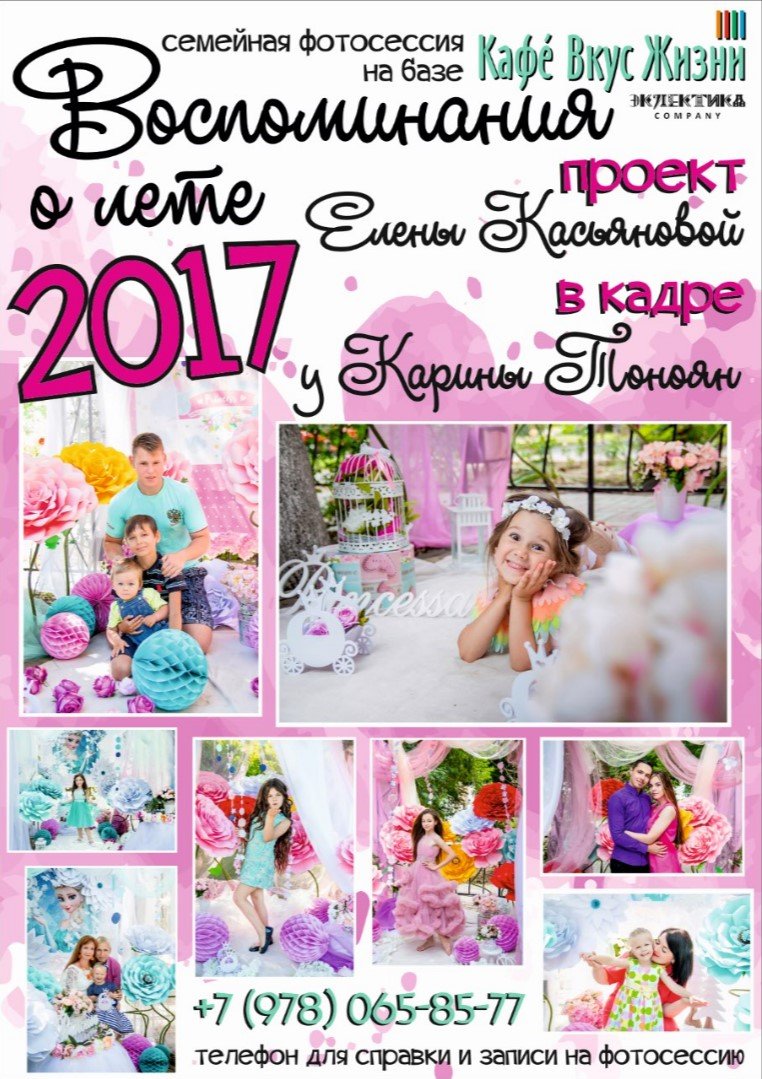 На базе кафе Елена Касьянова, известный и бесконечно талантливый оформитель праздников в г. Керчь, устанавливает красочные фотозоны в разных стилях. Это Ваш шанс - попасть в кадр к профессиональному фотографу, Карине Тоноян, и получить сказочные воспоминания о лете 2017.