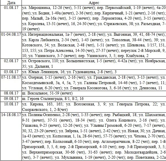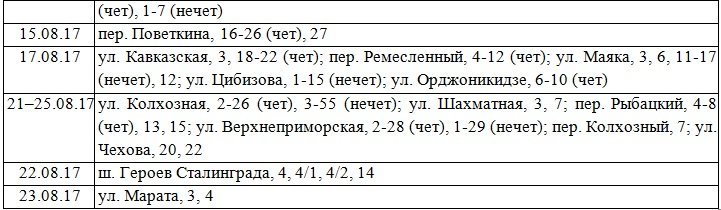ГУП РК «Крымэнерго» сообщает о том, что в связи с плановым ремонтом электрооборудования в августе с 8 до 17 часов будут происходить отключения линий электропередачи согласно нижеприведенному графику, - передает Керчь.ФМ.