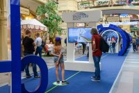 В ГУМе на Красной площади открылась выставка, посвященная строящемуся мосту через Керченский пролив. Экспозиция заняла 3-ю линию главного магазина страны.