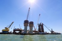 Как сообщалось ранее, в течение августа-сентября 2017 года на понтонах осуществят транспортировку автодорожной и железнодорожной арок к опорам строящегося моста для последующей установки.