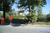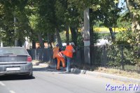 В Керчи 4 августа, на Генерала Петрова люди красят дорожные ограждения. Сами рабочие находятся на дороге, соблюдая технику безопасности, - сообщает корреспондент Керчь.ФМ.