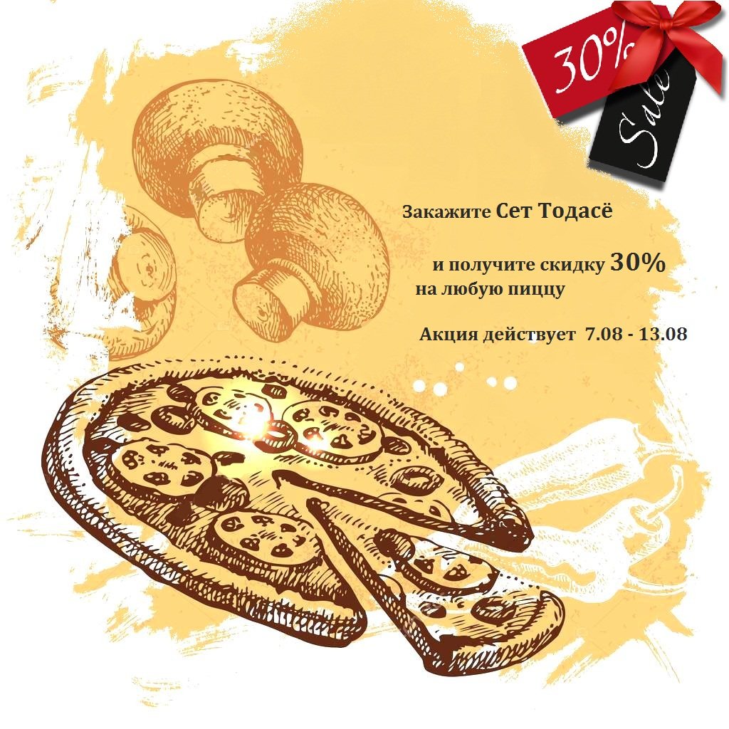 Закажите сет «Тодасё» и получите скидку 30% на любую пиццу!