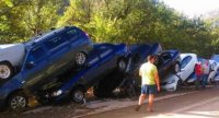 Сильный водно-грязевой поток, сошедший на проезжую часть трассы Грушевка - Судак в районе села Дачное в ночь с 18 на 19 августа, снес 15 автомобилей и сложил их по принципу домино. Об этом сегодня сообщили в пресс-службе МЧС по Республике Крым. Передает Керчь.ФМ