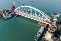 Напомним, железнодорожную арку Керченского моста завели в створ. Видео морской операции по доставке ж/д арки Керченского моста на фарватер