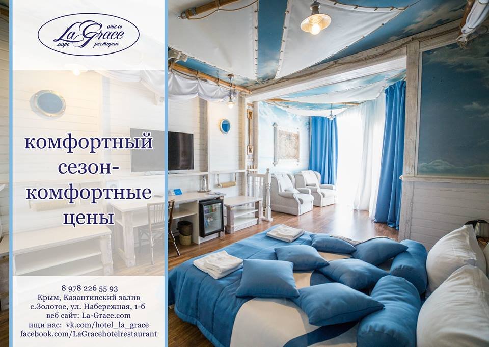 Сентябрь не повод огорчаться и думать что лето уже позади. С 1 сентября в отеле LaGrace начинается комфортный сезон. Цены на номера падают, а летнее настроение поднимается. Продолжаем наслаждаться морем, солнцем и комфортными ценами в отеле LaGrace.