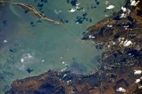 Российский космонавт-испытатель отряда космонавтов Роскосмоса Сергей Рязанский показал Крымский мост с Международной космической станции. Фото космонавт  опубликовал 2 сентября в Twitter, - передает Керчь.ФМ.
