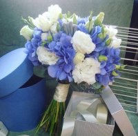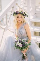 Красивым контрастом на фоне белого платья будет выделяться синий или фиолетовый букет.