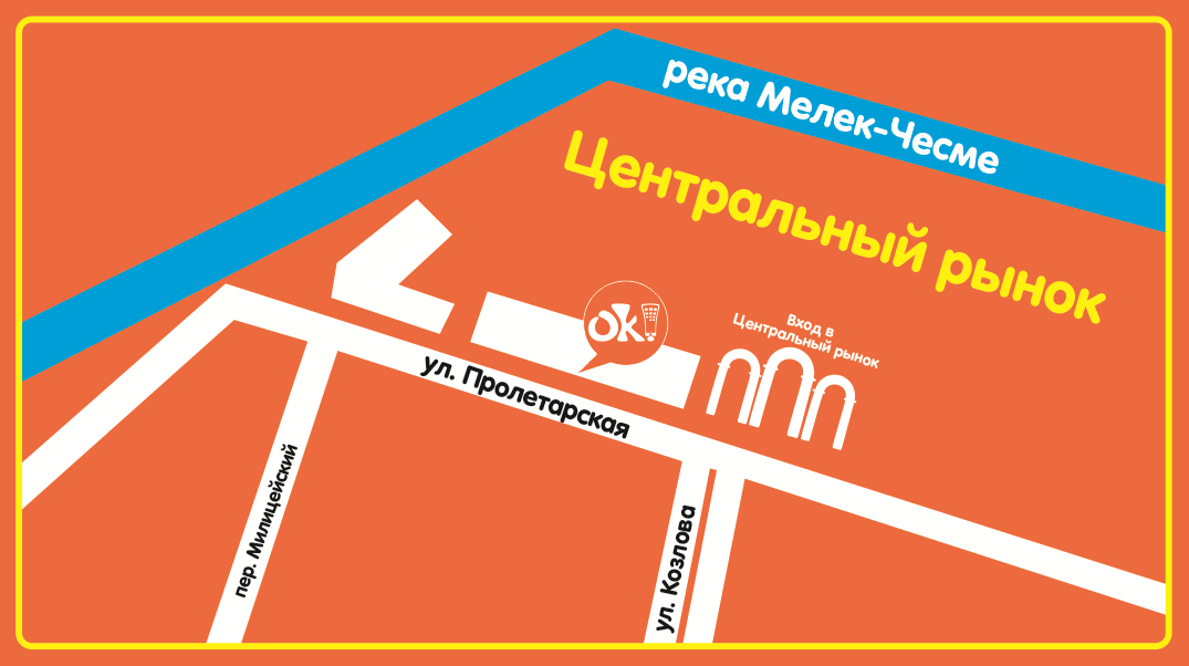 Мы находимся по адресу, ул. Пролетарская 11, слева от входа в рынок (со стороны улицы Козлова).