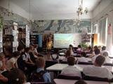 Школьникам показали небольшой фильм об истории нашего города. Затем библиотекарь Е.Я. Тимофеева с помощью презентации «Вечный город» рассказала ребятам о том, какие названия носил наш город в разное время, какие народы населяли Керчь, а также о керченских археологических достопримечательностях и находках.