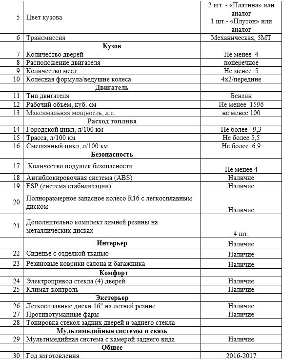 Планируется закупить три автомобиля марки «LADA VESTA». Год выпуска - не ранее 2016 года.