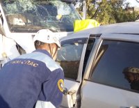 Предположительно, водитель автомобиля «Lada Kalina» ехал в сторону Симферополя не справился с управлением, выехал на полосу встречного движения, вследствие чего машина столкнулась в «лобовую» с автомобилем «Mercedes Sprinter».