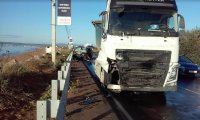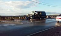 Пассажир микроавтобуса со значительными травмами госпитализирован, есть надежда на то, что его жизнь можно будет сохранить. Водитель фуры не пострадал.