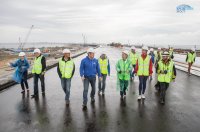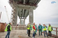 Победители конкурса проехали по всей стройке: увидели, как монтируют автодорожные и железнодорожные пролетные строения, формируют опоры, погружают сваи, армируют плиту проезжей части. Одними из первых они прошли по асфальту, который постелили на острове Тузла, увидели железнодорожную арку на опорах и корабли в Керчь-Еникальском канале.