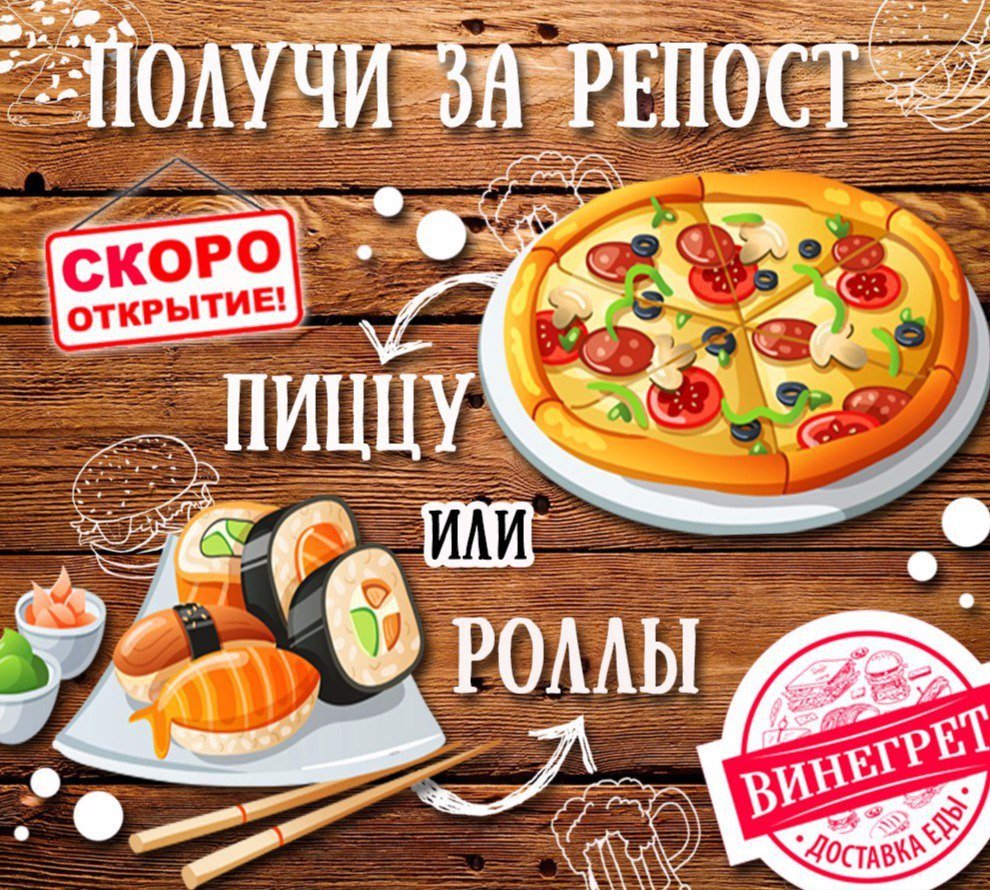 Доставка «Винегрет» - это выбор вкусных суши и роллов, пиццы, горячих блюд, салатов, закусок на дом или в офис.