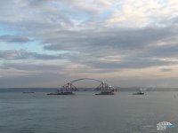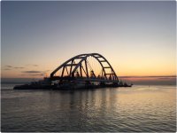 В Керченском проливе идет транспортировка автодорожной арки Крымского моста. Плавучие опоры ранним утром вышли из «ковша» у керченской технологической площадки и сейчас находятся на фарватере Керчь-Еникальского канала. Об этом сообщил Инфоцентр Крымский мост, - передает Керчь.ФМ.