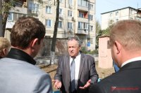 На данный момент рабочие только устанавливают бордюры. При этом, во дворе, который находится в центре города по Карла Маркса, 1, уже не только установили бордюры, но и положили плитку и готовятся асфальтировать дорогу. Кроме того, в этот двор уже неоднократно приезжали работники администрации и депутаты.
