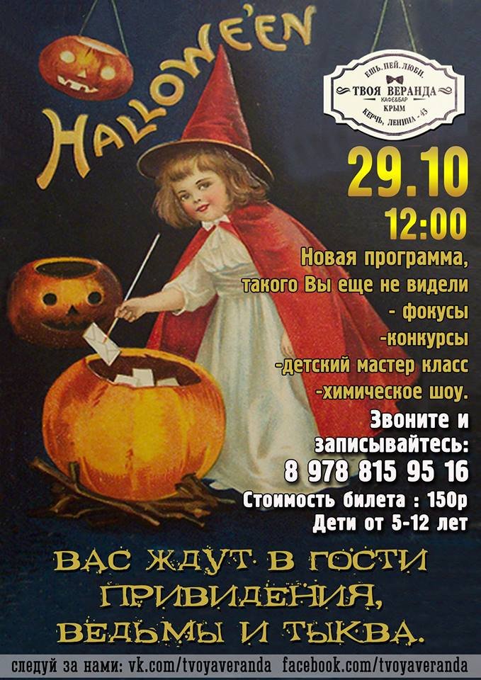 29 октября, Твоя Веранда приглашает на «Детский беспредел», детей от 5 до 12 лет на празднование Хэллоуина!