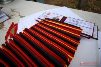 «В числе почетных гостей Николаю Гусакову, а также присутствующему на мероприятии начальнику отдела по межнациональным отношениям, взаимодействию с общественными и религиозными организациями Администрации города Керчи Сергею Ворончихину предоставили право забить по гвоздю в древко знамени. После знамя осветили священники по православной традиции», - пишет пресс-служба.