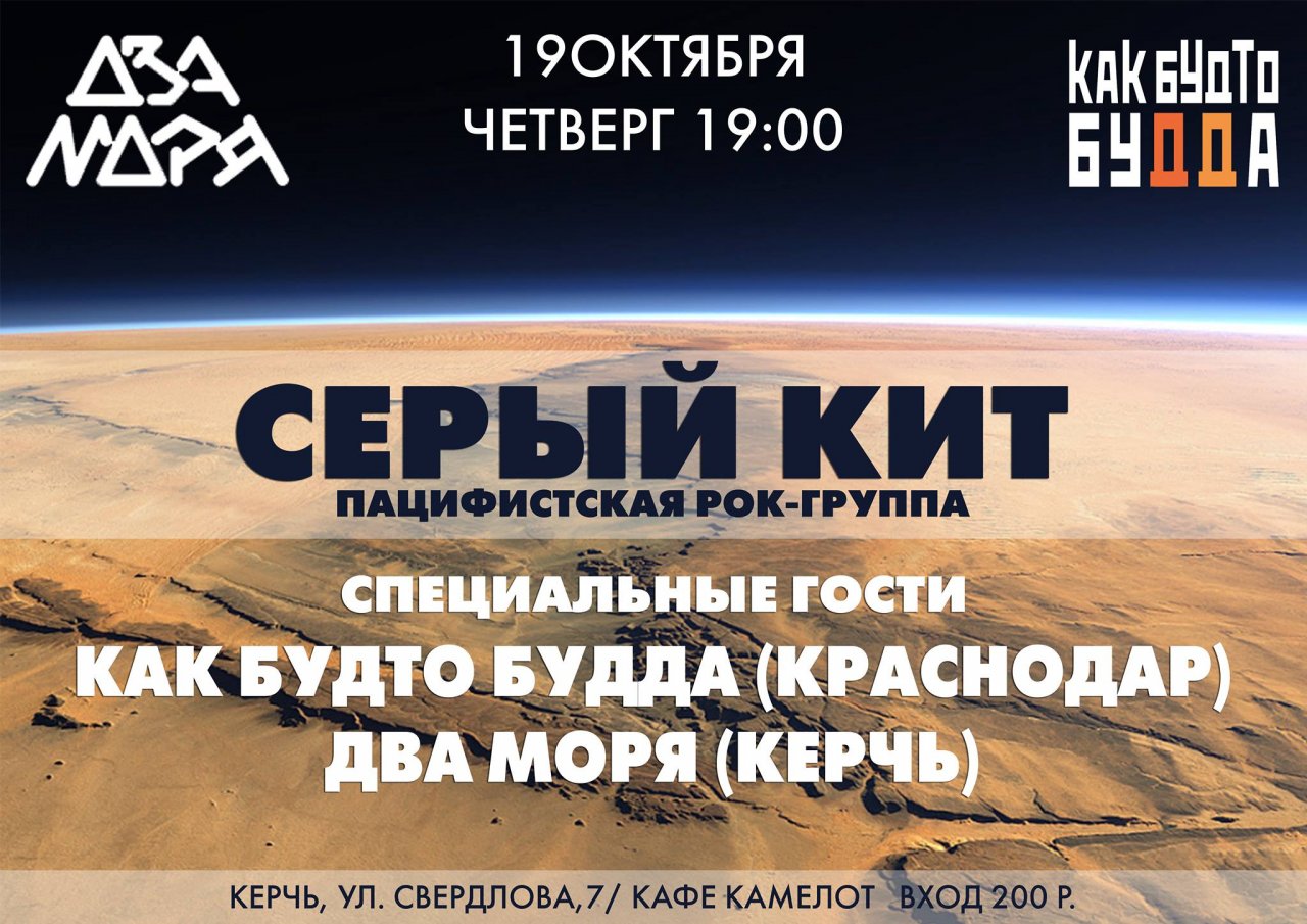 Московская рок-группа "Серый кит" приедет в Керчь, чтобы при поддержке краснодарской группы "Как Будто Будда" и керченских рокеров "Два Моря" презентовать дебютный альбом "Летим на Марс".