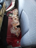 Для более глубокого осмотра автомобиля пограничники применили спецсредства и под задними пассажирскими сиденьями обнаружили партию мясной продукции.