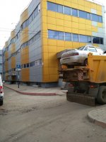 В соцсетях керчане выложили фотографии самосвала, в кузове которого находился легковой автомобиль. Фото сделано около торгового центра в Керчи, - передает Керчь.ФМ.