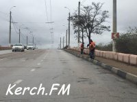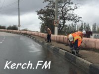В Керчи коммунальщики провели субботник на пешеходной дорожке на Горьковском мосту