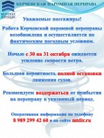 «Ночью с 30 на 31 октября ожидается усиление скорости ветра. Большая вероятность полной остановки движения судов. Рекомендуем воздержаться от прибытия на переправу в указанный период.