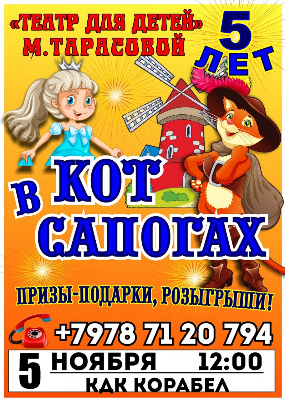 5 ноября 12:00 КДК Корабел премьера сказки-спектакля "КОТ В САПОГАХ" Не пропустите!