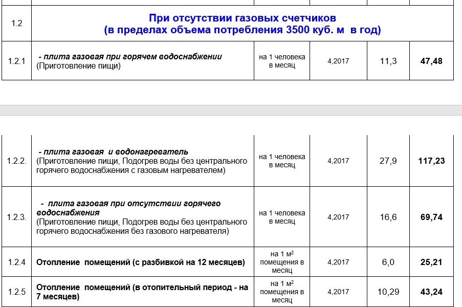 На сайте «Крымгазсети» выставлены такие тарифы для потребителей при отсутствии газовых счетчиков