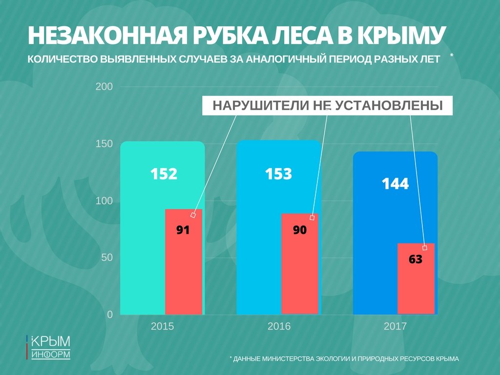 По состоянию на 20 ноября 2017 года лесные инспекторы выявили 144 случая самовольных рубок, в то время как за аналогичный период прошлого года этот показатель составил 153 случая. Снижение - чуть более 5%.