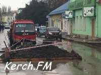В Керчи 17 декабря рабочие водоканала перерыли часть дороги на улице Советской. На данный момент яму не закопали. Место оградили и установили предупреждающие дорожные знаки, -  Керчь.ФМ