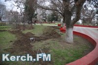 В Керчи в клумбах на площади Ленина, около сквера Афганцев, появились металлические подставки под освещение. По информации рабочих, работы должны завершить к новогодним праздникам.