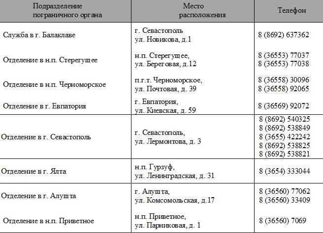 Для получения подробной информации обращайтесь в следующие подразделения пограничного органа: