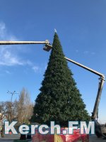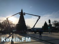 Продолжаются работы по украшению главной новогодней красавицы. На елке уже установили звезду.